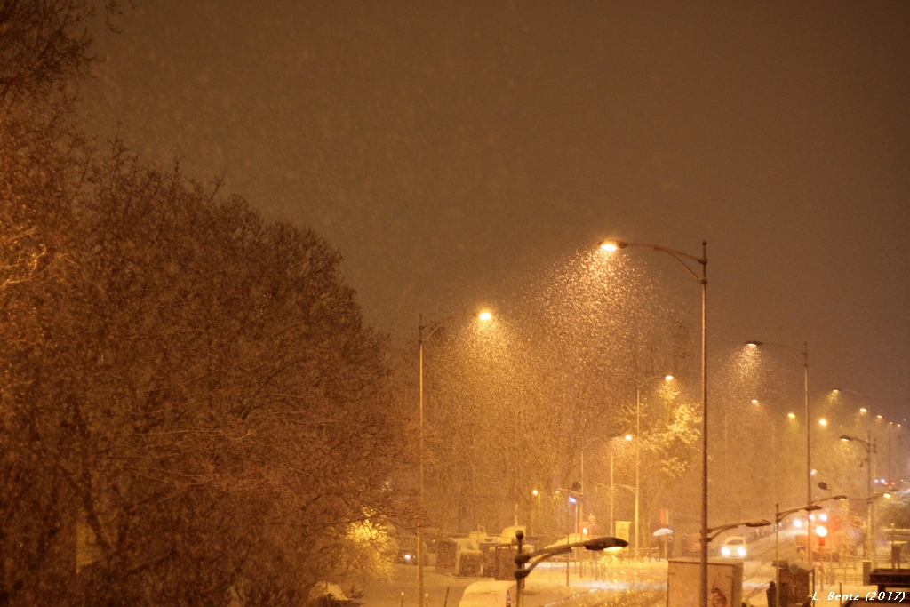 La neige est tombée à Sarcelles. De mes fenêtres, quelques photos prises au réflex (Canon EOS 50) sans flash, évidemment. D'abord avec un objectif 17-85, ensuite avec une focale fixe de 50 mm ouvrant à 1,8.